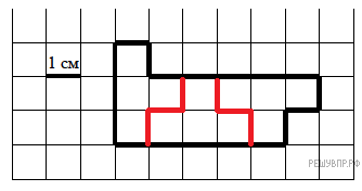 Версия для печати и копирования в MS WordРазрежьте фигуру по линиям на три одинаковые части. Найдите периметр одной из этих частей, если сторона клетки равна 1 см.