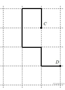 Версия для печати и копирования в MS WordНа рисунке, данном в условии, начертите по сторонам квадратов какую-нибудь ломаную, которая соединит точки C и D и будет иметь длину 56 см.